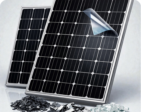 Recovered EVA encapsulant recycled for reuse in industrial plastics and energy-efficient materials.